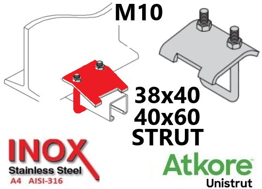 Unistrut profielklem T+I balk-rails 38x40,ST41x21-41..M10 A4 Met rechte U-beugel, 2 moeren en klemplaat ROESTVRIJSTAAL A4 - AISI 316 Fabric pack - Prijs en aantal per stuk Karton doos / Atkore partnumber : P2785SS Ean barcode = 5401096025123 =1 doos van 20 stuks Verpakt per 20 Stuks/Overdoos 200 Stuks