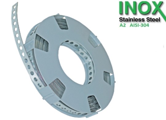WT Bandijzer EP-CA-Recht 0.8x25 mm A2-304 (1x10 Mtr.) Groot centraal gat - in cassette - Inox AISI 304 WT - Barcoded retail pack / Prijs en aantal per Pack WT label met barcode op stuk Ean Nr. = 5420023946072 = 1 Rol/Stuk Verzendaantal = 5 Stuks(Rollen)/Pallet = 100 Stuks(Rollen)