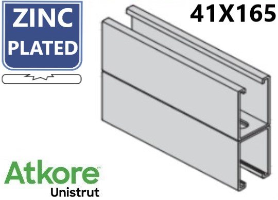 Unistrut dubbele M-rail vz. perfo 41x165x2.50 L 6.0 Mtr
