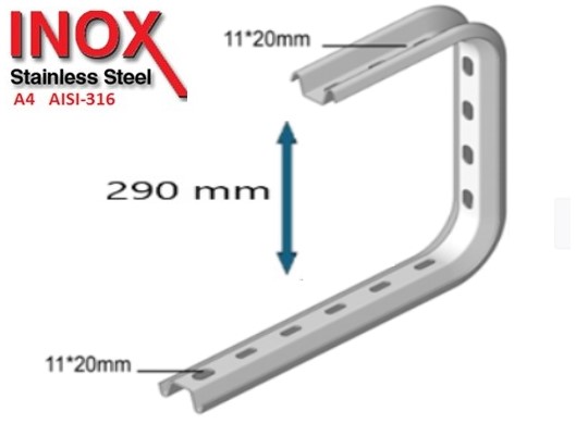 PLAFONDBEUGEL C-vorm INOX A4-316 - 290x100 (1 stuk)